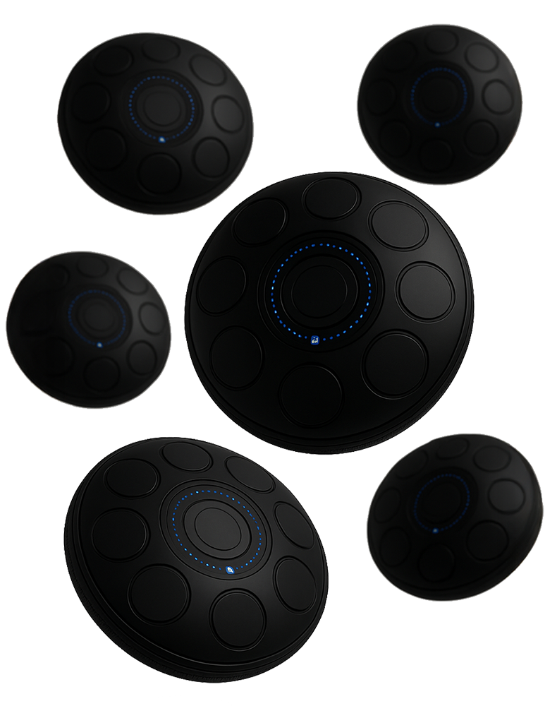 The Lumen Handpan features a traditional layout, similar to that of an acoustic handpan, making it easy for traditional handpan players to transition to the Lumen Handpan.